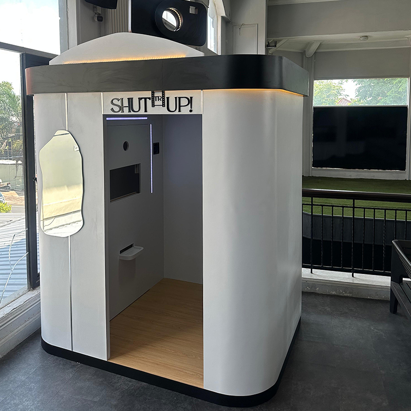 - Integrasi Lighting & Display: Dilengkapi sistem pencahayaan LED atau signage digital untuk hasil foto lebih hidup dan profesional.